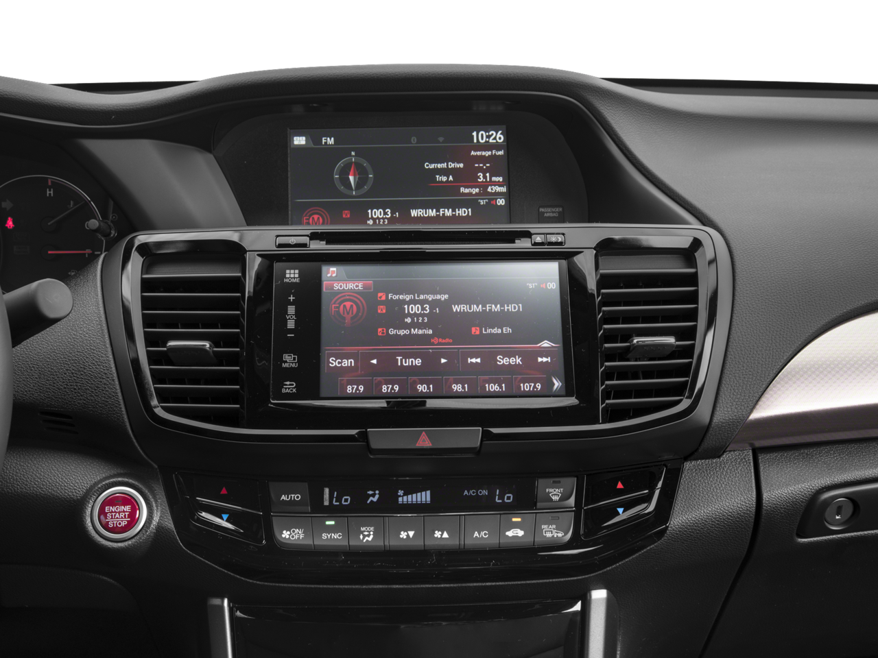 - Radio: 360-Watt AM/FM/HD Premium Audio System -inc: 6 speakers, subwoofer, SiriusXM satellite radio, 7" Display Audio w/high-resolution WVGA (800x480) electrostatic touch-screen w/i-MID and customizable feature settings, Bluetooth® HandsFreeLink, Bluetooth® streaming audio, Pandora compatibility, SMS text message function, radio data system (RDS), speed-sensitive volume control (SVC), USB audio interface w/1.5-amp charging port in front and 1.0-amp charging port in center console, HondaLink, Apple Carplay, Android Auto, illuminated steering wheel-mounted audio controls and roof-mounted antenna