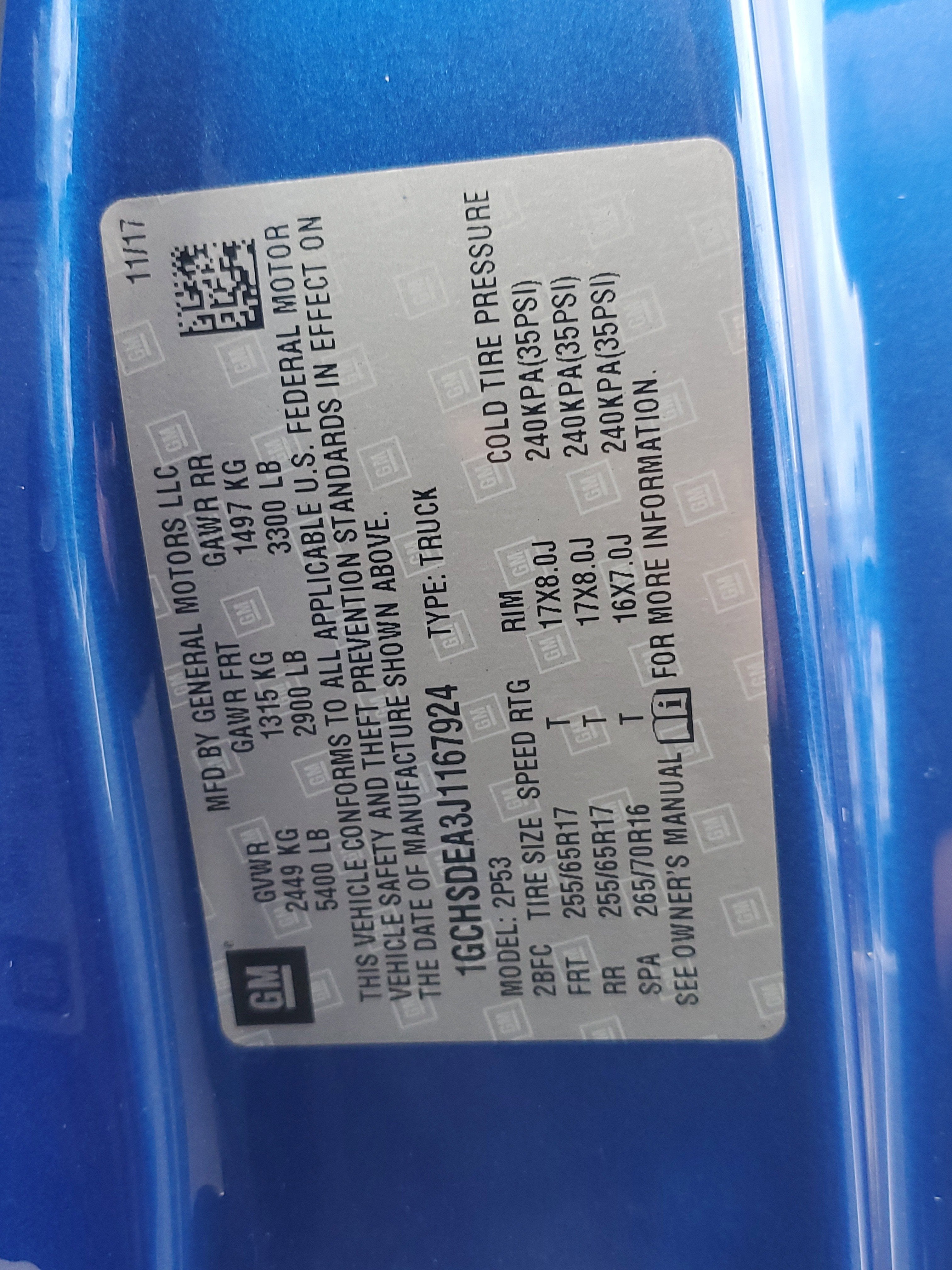 - Front Tire Size: 255/65R17