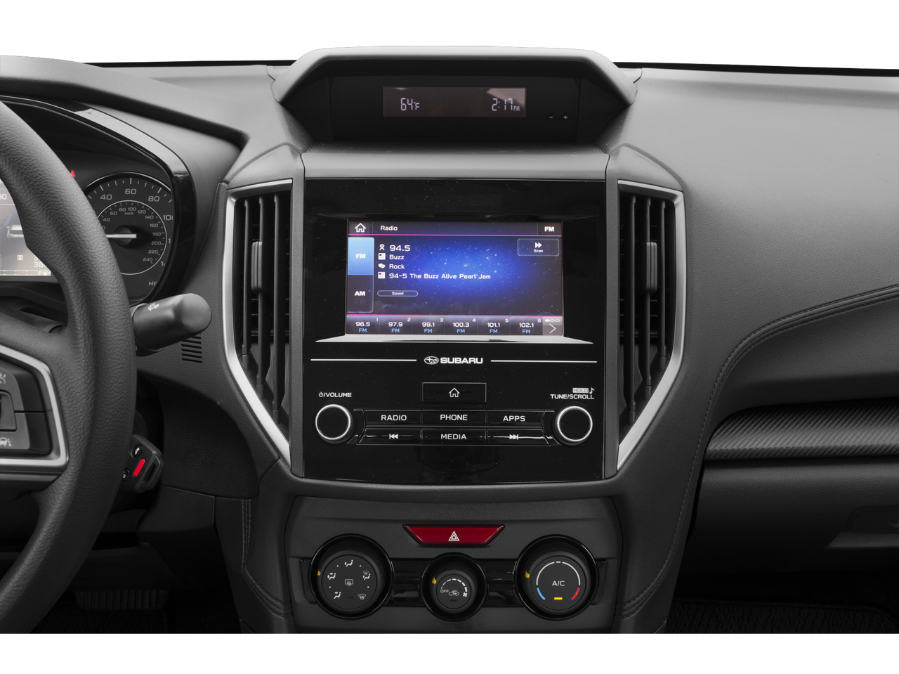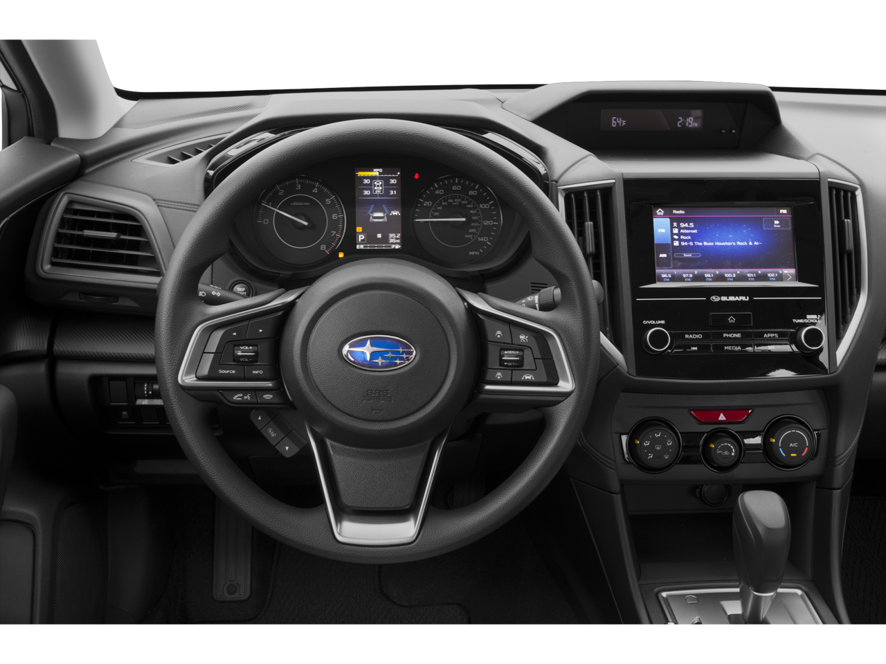 - Radio: Subaru STARLINK 6.5" Multimedia Plus System -inc: AM/FM stereo, HD radio, single disc CD player, MP3/WMA/CRR/RW file capability, multi touch gesture high resolution 6.5 LCD display screen, Bluetooth® audio streaming connectivity, Bluetooth® hands-free phone connectivity, iPod control capability, rear-vision camera display, SiriusXM All Access radio (subscription required), SiriusXM Travel Link (subscription required), smartphone integration, AHA, Android Auto, CarPlay, Pandora, 6 speakers, 3.5mm auxiliary input jack, dual USB ports, roof mounted antenna and audio/satellite connected services