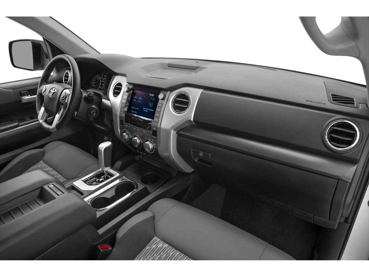 This Vehicle is nicely equipped with the following features: Convenience EVP, Convenience Package (Blind Spot Monitor w/Rear Cross Traffic Alert and Front & Rear Clearance Backup Sonar), SR5 Package (Front Fog & Driving Lights, Illuminated Entry System, Rear Under Seat Storage Tray, and Sliding Rear Window w/Privacy Glass), SR5 Upgrade Package (38 Gallon Fuel Tank Capacity, Anti-Theft Immobilizer w/Alarm, Front Bucket Seats, and Urethane Tilt/Telescopic 4-Spoke Steering Wheel), Graphite Cloth, 18" x 8J Styled Steel Wheels, 3-Passenger Front Bench Seat, 4-Wheel Disc Brakes, 4.30 Axle Ratio, 7 Speakers, ABS brakes, Air Conditioning, AM/FM radio: SiriusXM, Apple CarPlay/Android Auto, Auto High-beam Headlights, Auto-dimming Rear-View mirror, Brake assist, Deck Rail System, Delay-off headlights, Driver door bin, Driver vanity mirror, Dual front impact airbags, Dual front side impact airbags, Electronic Stability Control, Emergency communication system: Safety Connect with 1-year trial, Exterior Parking Camera Rear, Fabric Seat Trim, Front anti-roll bar, Front Center Armrest w/Storage, Front fog lights, Front reading lights, Front wheel independent suspension, Fully automatic headlights, Garage door transmitter: HomeLink, Heated door mirrors, Illuminated entry, Knee airbag, Low tire pressure warning, Occupant sensing airbag, Outside temperature display, Overhead airbag, Overhead console, Panic alarm, Passenger door bin, Passenger vanity mirror, Power door mirrors, Power steering, Power windows, Radio data system, Radio: Audio Plus AM/FM/HD Radio, Rear reading lights, Rear step bumper, Remote keyless entry, Safety Connect, SiriusXM Radio, Speed control, Speed-sensing steering, Split folding rear seat, Steering wheel mounted audio controls, Tachometer, Tilt steering wheel, Traction control, Trip computer, Variably intermittent wipers, and Voltmeter.