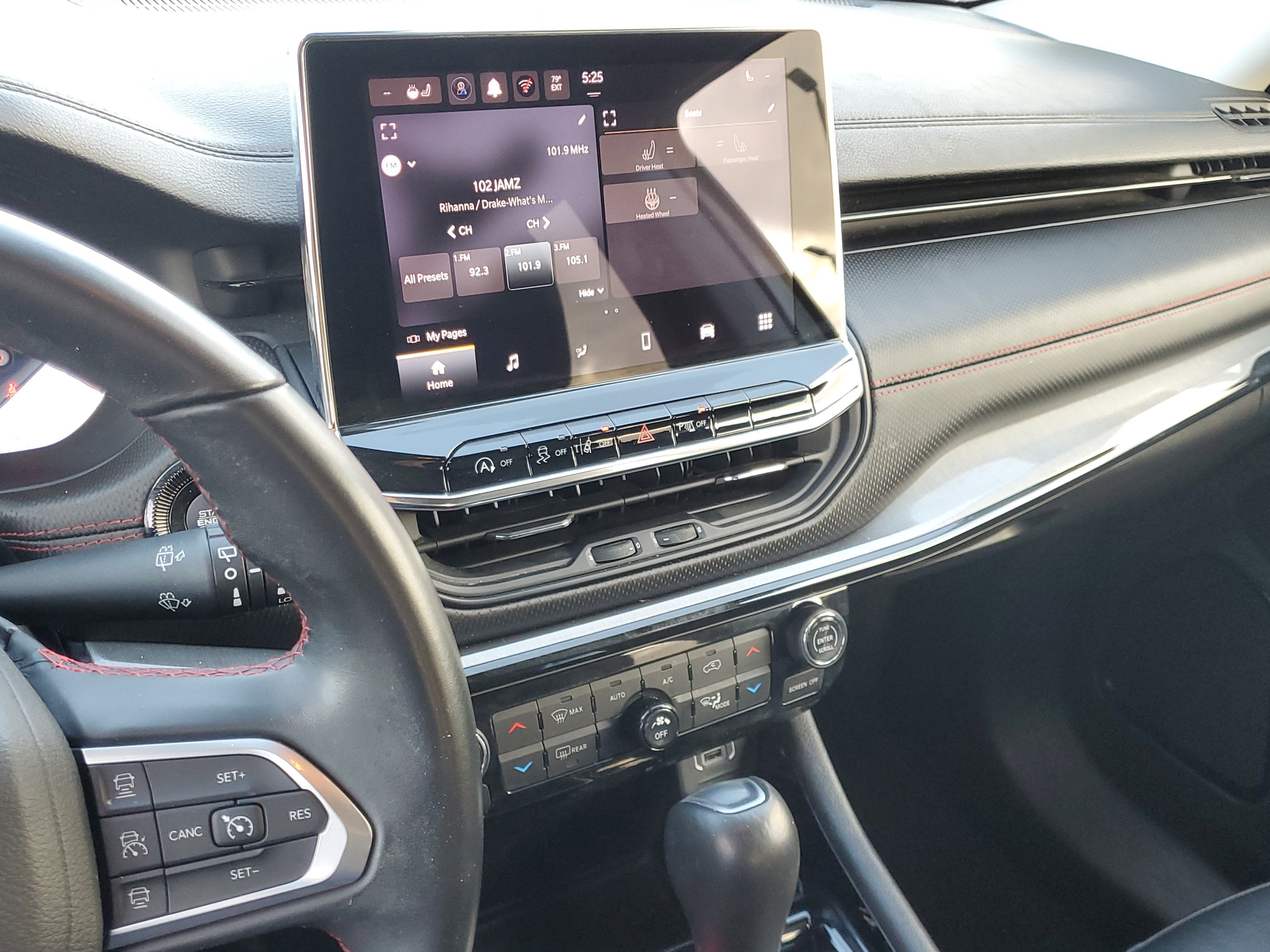- UConnect 5 w/Seek-Scan, Clock, Aux Audio Input Jack, Steering Wheel Controls and Voice Activation