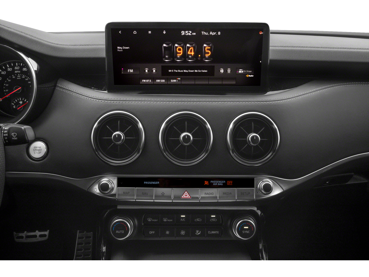 This vehicle comes equipped with : Sun & Sound Package (8-Way Power Adjustable Passenger Seat, Power Tilt & Slide Sunroof w/One-Touch, and Radio: harmon/kardon AM/FM/MP3/HD Audio System), Kia Certified Pre-Owned Certified, 4-Wheel Disc Brakes, 9 Speakers, ABS brakes, Air Conditioning, Alloy wheels, AM/FM radio: SiriusXM, Anti-whiplash front head restraints, Apple CarPlay & Android Auto, Auto High-beam Headlights, Auto-dimming Rear-View mirror, Automatic temperature control, Brake assist, Bumpers: body-color, Carpeted Floor Mat, Delay-off headlights, Driver door bin, Driver vanity mirror, Dual front impact airbags, Dual front side impact airbags, Electronic Stability Control, Emergency communication system, Exterior Parking Camera Rear, Four wheel independent suspension, Front anti-roll bar, Front Bucket Seats, Front Center Armrest, Front dual zone A/C, Front reading lights, Fully automatic headlights, Heated door mirrors, Heated Front Bucket Seats, Heated front seats, Heated steering wheel, Illuminated entry, Knee airbag, Leather Seat Trim, Low tire pressure warning, Mud Guards, Navigation System, Occupant sensing airbag, Outside temperature display, Overhead airbag, Overhead console, Panic alarm, Passenger door bin, Passenger vanity mirror, Power door mirrors, Power driver seat, Power steering, Power windows, Radio: AM/FM/MP3/HD Audio System, Rain sensing wipers, Rear air conditioning, Rear anti-roll bar, Rear seat center armrest, Rear window defroster, Remote keyless entry, Security system, Smart Key w/ Push Button and Remote Start, Speed control, Speed-Sensitive Wipers, Split folding rear seat, Sport steering wheel, Steering wheel mounted audio controls, Tachometer, Telescoping steering wheel, Tilt steering wheel, Traction control, Trip computer, Turn signal indicator mirrors, Variably intermittent wipers, and Wheels: 8.0J x 18 Vertex Alloy.