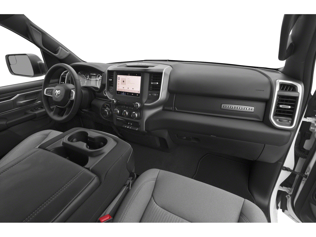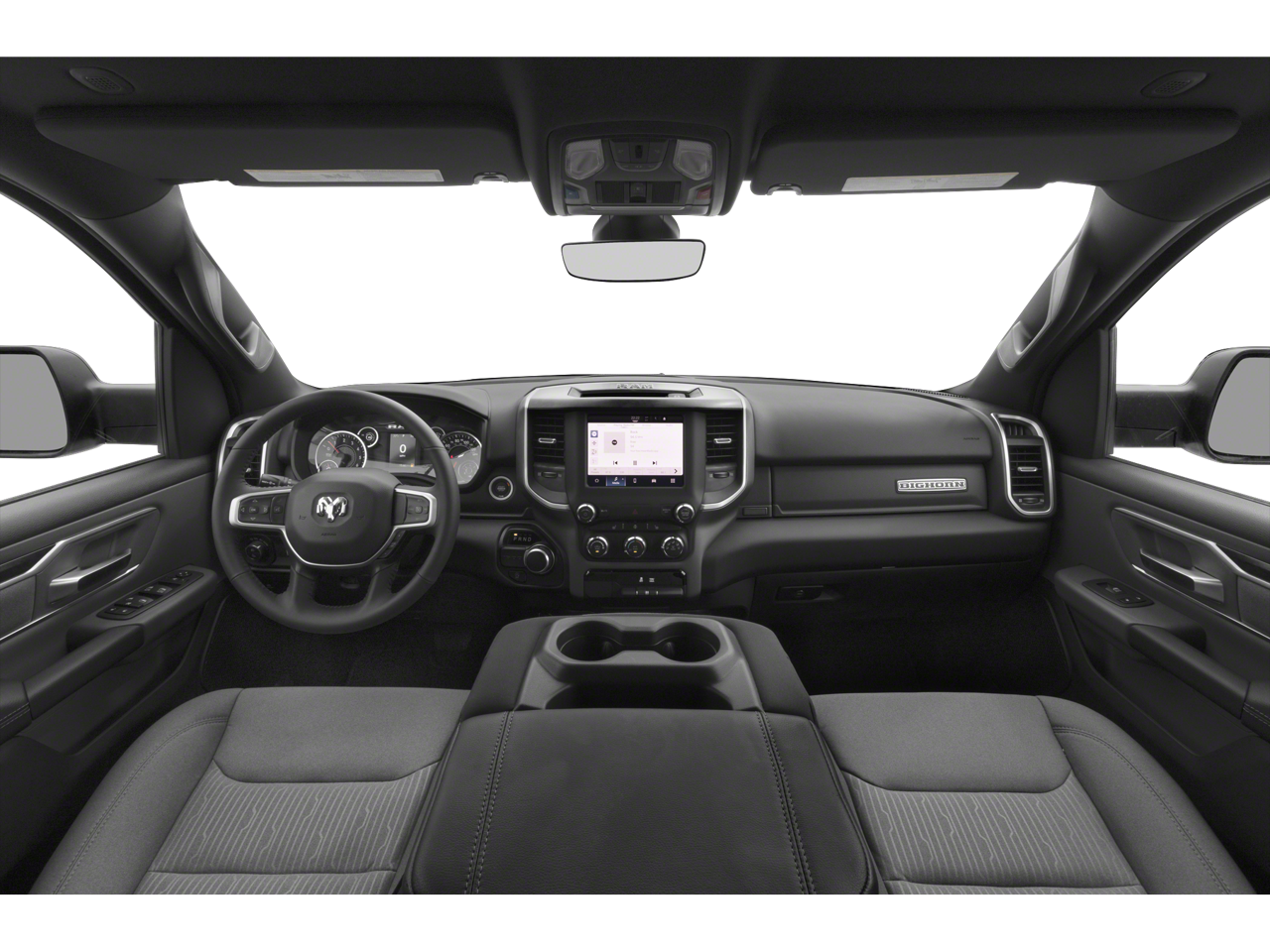 This vehicle comes equipped with: Big Horn Level 1 Equipment Group (4G LTE Wi-Fi Hot Spot, 8.4 Touchscreen Display, Apple CarPlay, Auto-Dimming Exterior Driver Mirror, Auto-Dimming Rear-View Mirror, Black Exterior Mirrors, Black Premium Power Mirrors, Bluetooth® Handsfree Phone & Audio, Class IV Receiver Hitch, Connectivity - US/Canada, Convex Wide-Angle Mirror Insert, Exterior Mirrors Courtesy Lamps, Exterior Mirrors w/Heating Element, Exterior Mirrors w/Supplemental Signals, For Details, Visit DriveUconnect.com, For More Info, Call 800-643-2112, Front Fog Lamps, Glove Box Lamp, Google Android Auto, GPS Antenna Input, Heated Front Seats, Heated Steering Wheel, Integrated Center Stack Radio, Passenger Sun Visor w/Illuminated Mirror, Power-Folding Mirrors, Radio: Uconnect 5 W w/8.4 Display, Rear Dome w/On/Off Switch Lamp, Rear Power Sliding Window, Rear Window Defroster, SiriusXM Satellite Radio, and USB Host Flip), Quick Order Package 23R Lone Star (Regional) (Lone Star Badge), 3 Rear Seat Head Restraints, 3.21 Rear Axle Ratio, 4 Way Front Headrests, 4-Wheel Disc Brakes, 48V Belt Starter Generator, 6 Speakers, ABS brakes, Air Conditioning, Alloy wheels, AM/FM radio, Brake assist, Bumpers: chrome, Cloth Bench Seat, Compass, Delay-off headlights, Driver door bin, Dual front impact airbags, Dual front side impact airbags, Electronic Stability Control, Emergency communication system: SiriusXM Guardian, Front anti-roll bar, Front Center Armrest w/Storage, Front License Plate Bracket, Front reading lights, Front Seat Back Map Pockets, Front wheel independent suspension, Fully automatic headlights, Heated door mirrors, Illuminated entry, Integrated Voice Command w/Bluetooth®, Leather steering wheel, Low tire pressure warning, Manual Adjust 4-Way Front Passenger Seat, MOPAR Front & Rear Rubber Floor Mats, Occupant sensing airbag, Outside temperature display, Overhead airbag, Overhead console, Panic alarm, ParkView Rear Back-Up Camera, Passenger door bin, Passenger vanity mirror, Power door mirrors, Power steering, Power windows, Radio data system, Radio: Uconnect 3 w/5 Display, Rear 60/40 Folding Seat, Rear anti-roll bar, Rear seat center armrest, Rear step bumper, Remote keyless entry, Remote Start System, Speed control, Split folding rear seat, Steering wheel mounted audio controls, Tachometer, Telescoping steering wheel, Tilt steering wheel, Traction control, Trip computer, Variably intermittent wipers, Voltmeter, and Wheels: 18 x 8 Cast-Aluminum PainteD.