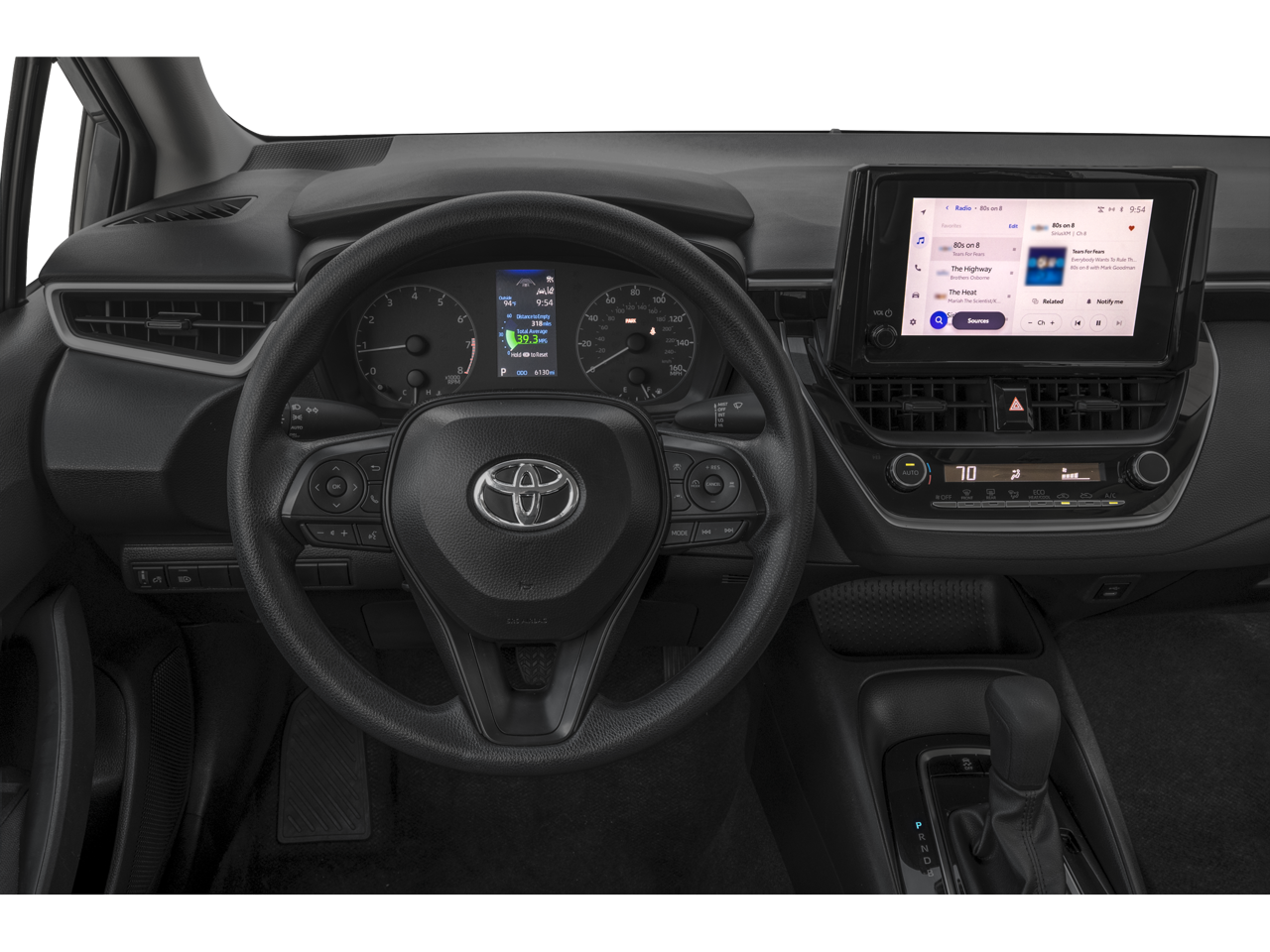 This Vehicle is nicely equipped with the following features: 4-Wheel Disc Brakes, 6 Speakers, ABS brakes, Air Conditioning, AM/FM radio: SiriusXM, Apple CarPlay/Android Auto, Auto High-beam Headlights, Automatic temperature control, Brake assist, Bumpers: body-color, Delay-off headlights, Driver door bin, Driver vanity mirror, Dual front impact airbags, Dual front side impact airbags, Electronic Stability Control, Emergency communication system: Safety Connect (up to 10-year trial subscription), Exterior Parking Camera Rear, Fabric Seat Trim, Front anti-roll bar, Front Bucket Seats, Front Center Armrest, Front reading lights, Front wheel independent suspension, Fully automatic headlights, Illuminated entry, Knee airbag, Low tire pressure warning, Occupant sensing airbag, Outside temperature display, Overhead airbag, Panic alarm, Passenger door bin, Passenger vanity mirror, Power door mirrors, Power steering, Power windows, Radio data system, Radio: 8 Toyota Audio Multimedia, Rear anti-roll bar, Rear seat center armrest, Rear side impact airbag, Rear window defroster, Remote keyless entry, Speed control, Split folding rear seat, Steering wheel mounted audio controls, Tachometer, Telescoping steering wheel, Tilt steering wheel, Traction control, Trip computer, and Wheels: 16 Steel with Covers.