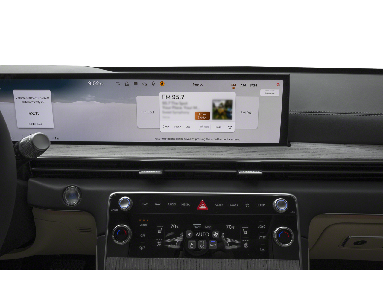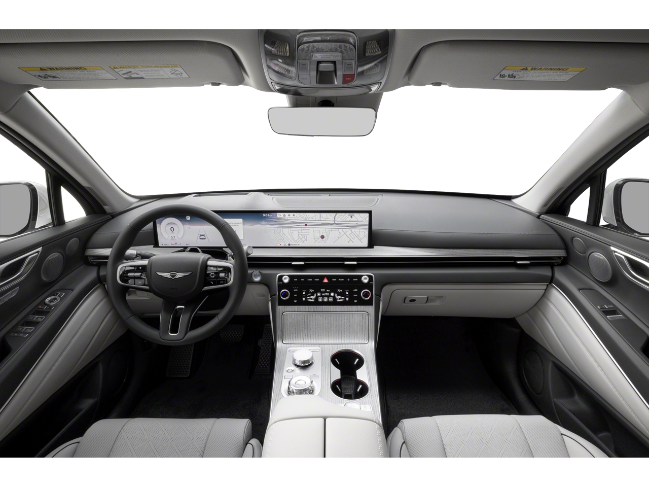 This Vehicle is nicely equipped with the following features: Option Group 01, 18 Speakers, 3rd row seats: split-bench, 4-Wheel Disc Brakes, ABS brakes, Adaptive suspension, Air Conditioning, Alloy wheels, AM/FM radio: SiriusXM, Anti-whiplash front head restraints, Auto High-beam Headlights, Auto tilt-away steering wheel, Auto-dimming door mirrors, Auto-dimming Rear-View mirror, Automatic temperature control, Brake assist, Bumpers: body-color, Cargo Net, Compass, Delay-off headlights, Driver door bin, Driver vanity mirror, Dual front impact airbags, Dual front side impact airbags, Electronic Stability Control, Emergency communication system: Genesis Connected Services, Exterior Parking Camera Rear, First Aid Kit, Four wheel independent suspension, Front and Rear Mudguards, Front anti-roll bar, Front Bucket Seats, Front Center Armrest, Front dual zone A/C, Front reading lights, Fully automatic headlights, Garage door transmitter: HomeLink, Genuine wood console insert, Genuine wood dashboard insert, Genuine wood door panel insert, Heads-Up Display, Heated and Ventilated Front Bucket Seats, Heated door mirrors, Heated front seats, Heated rear seats, Heated steering wheel, Illuminated entry, Knee airbag, Leather steering wheel, Low tire pressure warning, Memory seat, Nappa Leather Seating Surfaces, Navigation System, NFC Key Card, Occupant sensing airbag, Outside temperature display, Overhead airbag, Overhead console, Panic alarm, Passenger door bin, Passenger vanity mirror, Power door mirrors, Power driver seat, Power Liftgate, Power moonroof, Power passenger seat, Power steering, Power windows, Radio data system, Radio: AM/FM/HD Bose Premium Sound System, Rain sensing wipers, Rear air conditioning, Rear anti-roll bar, Rear reading lights, Rear seat center armrest, Rear side impact airbag, Rear window defroster, Rear window wiper, Reclining 3rd row seat, Remote keyless entry, Roadside Assistance Kit, Security system, Speed control, Speed-sensing steering, Speed-Sensitive Wipers, Split folding rear seat, Spoiler, Steering wheel memory, Steering wheel mounted audio controls, Tachometer, Telescoping steering wheel, Tilt steering wheel, Traction control, Trip computer, Turn signal indicator mirrors, Variably intermittent wipers, Ventilated front seats, Ventilated rear seats, and Wheels: 22 x 9.5J Dark Gray Matte Alloy.